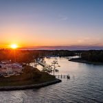 A rare coastal discovery for discerning buyers seeking expansive ”big water” views, architectural excellence, and a refined lifestyle beyond the crowds. Set on approximately one acre with sweeping 180-degree views of the Neuse River and Pamlico Sound, this masterfully crafted waterfront estate is located in one of Coastal Carolina’s most authentic and vibrant sailing communities—offering serenity, privacy, and access without congestion. Inspired by the timeless beauty of the Tuscan countryside, the architect-designed residence captures panoramic water views from nearly every room. A tranquil courtyard entry opens to a dramatic gallery with soaring vaulted ceilings and blue-water vistas beyond. The gracious great room features a wet bar, fireplace, and seamless flow to a screened porch and expansive terraces—ideal for entertaining or quiet reflection. A gourmet kitchen with Sub-Zero and Viking appliances, dual prep areas, and an herb courtyard balances elegance and function. The luxurious owner’s suite offers a private terrace overlooking the water and dual spa-like baths. A library and thoughtfully designed guest suites provide comfort and privacy for family and guests. Outdoors, manicured lawns meet the shoreline, often framed by passing sailboats and dolphins. A deeded boat slip with power plus an additional landing and fishing dock complete this exceptional offering. Additional amenities include a whole-house generator, sound and security systems, heated bathroom floors, reverse-osmosis water, specialty lighting, and generous storage. An extraordinary opportunity to acquire a beautiful, architecturally significant waterfront home at a value rarely found in premier coastal markets—perfect for buyers ready to escape urban sprawl and embrace true coastal elegance.