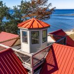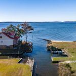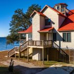 Enjoy iconic coastal living in this Neuse Riverfront home with its distinctive design inspired by the classic Inner Coastal screw-pile cottage-style lighthouses, including the celebrated New Canal Lighthouse on Lake Pontchartrain in New Orleans, Louisiana. Ideally located just a short stroll from the Minnesott Beach Golf & Country Club, minutes from the ferry, and close to Wayfarers Cove Marina, this three-bedroom, 2.5-bath residence blends architectural charm with modern comforts. Elevated on pilings with modular construction, the home features bamboo floors, plantation shutters, Anderson windows, and built-in bookcases that create a warm, character-rich interior. An elevator provides convenient access to all levels. The well-appointed kitchen includes quartz countertops, a JennAir 6-burner cooktop, built-in oven, microwave, refrigerator, dishwasher, and a stackable washer/dryer. Bathrooms include clean, easy-to-maintain walk-in showers. A striking spiral stairwell leads to an upper-level observation platform, offering elevated vistas of the Neuse River and surrounding coastal landscape. Outdoor living continues with a screened porch, open porch, extensive decking, a concrete patio, and a workshop. A two-car garage adds storage and convenience. A metal roof and air-to-air heat pump enhance durability and efficiency. Boaters will love the private boat basin complete with three slips and a 5,000-lb boat lift, providing direct access to the Neuse River. A serene private sandy beach completes this exceptional riverfront setting. A distinctive coastal retreat that beautifully blends lighthouse-inspired architecture with superb waterfront amenities.