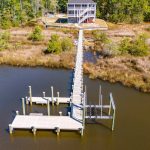 Welcome to a home where every sunrise glistens off the deep waters of Moore’s Creek, and every evening ends with the sound of nature settling across your waterfront tranquility. This newly built, elevated coastal estate is more than a home; it’s a statement of craftsmanship, design, and the art of living well. Rising above the flood plain, it commands both confidence and grace, offering panoramic views of the creek and the wildlife that call this place home. A 250′ concrete dock stretches out into deep waters, complete with a boat lift and one of North Carolina’s best trout holes at its edge. Mornings begin with the quiet cast of a fishing line and evenings end beneath painted skies reflected on the water’s surface. The open-concept first floor celebrates connection and comfort; with a full bar, billiards area, and multiple entertainment zones thoughtfully designed for hosting family and friends. The grand office doubles as a creative retreat, while a screened-in deck invites you to enjoy the coastal air year-round. Upstairs, sophistication meets serenity. A chef-inspired kitchen opens to a spacious living area with a fireplace and custom shelving, flowing seamlessly to a screened-in porch overlooking the water; a perfect backdrop for morning coffee or sunset gatherings. The primary suite offers pure indulgence, featuring a spa-worthy bath, walk-in shower, and private laundry access. Also includes two elegant guest suites for visitors. A two-bay garage provides ample space for vehicles and projects, while two flex rooms; currently used as falcon rooms; await your imagination: a studio, fitness space, wine room, or private hideaway. And from the balconies, life unfolds in full color; deer grazing in the distance, herons gliding over the water, and eagles soaring above. It’s here, surrounded by the beauty of land, water, and sky, that every day feels like a quiet luxury. This is Eastern North Carolina living; elegant, effortless, and entirely unforgettable.